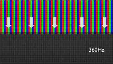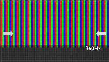 传统液晶驱动是从左到右单向进行,,,在画面更新速度愈来越愈快的情况下,,,,位于驱动线路末端的右下角区域,,画素的闸极来不及在短时间内获得足够电压,,,,无法显示出正确的颜色资讯。。。 |